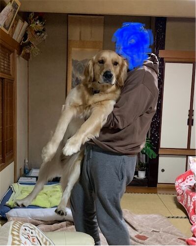 お正月に娘家族がやって来て大興奮だったマックス 孫達を追いかけ回すし、娘婿には飛びかかるしで大変でした。 あまりにも興奮が収まらないので、体格の良い長女の婿に思わず抱っこされてビックリ‼️でおとなしくなってしまった。仔犬の時に抱っこされてだけ…